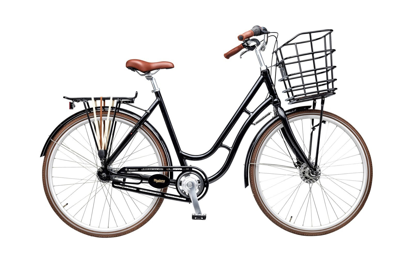 Fine detaljer som designskærm, bagagestropper og farvet kurv fuldender cyklens look og gør samtidig turen mere bekvem.